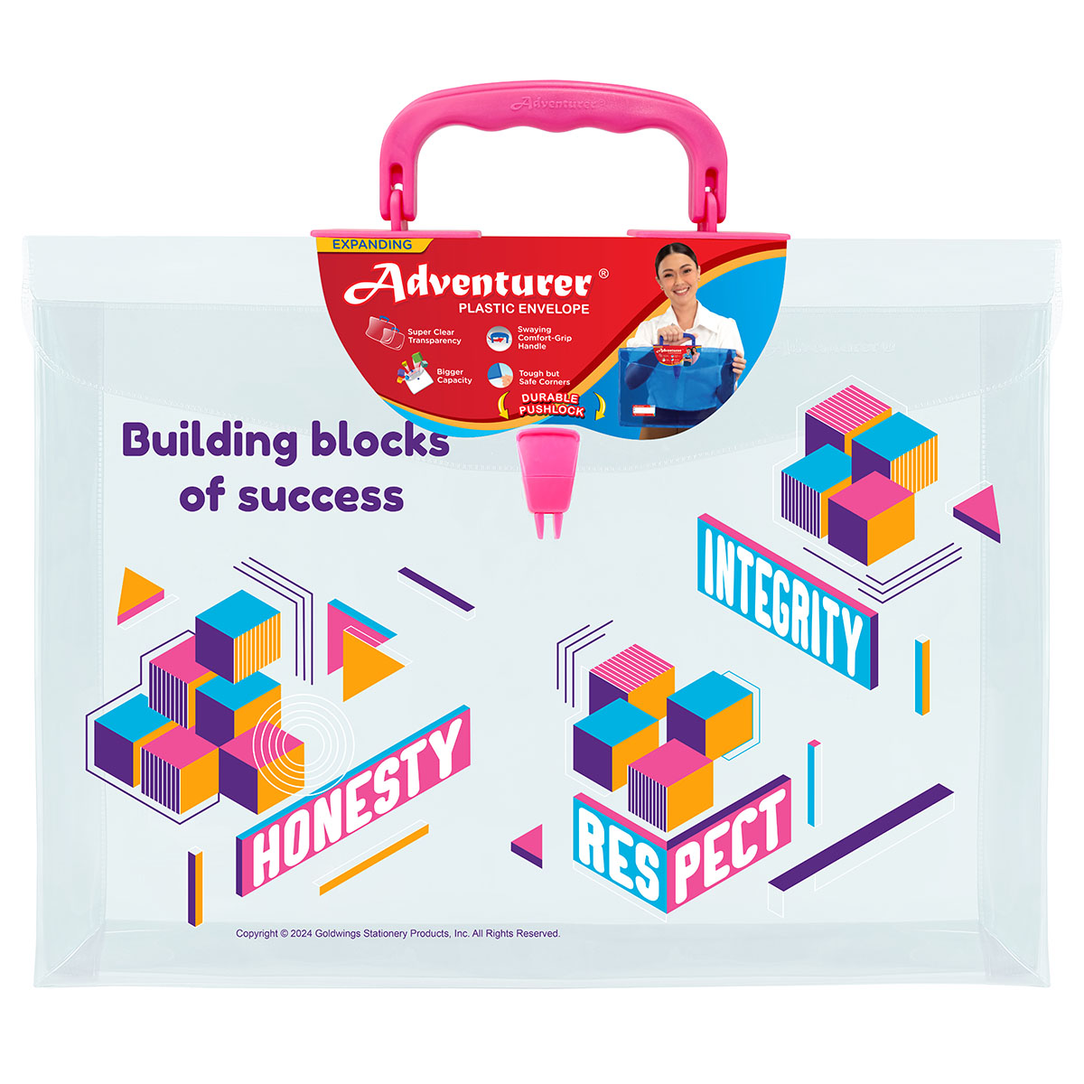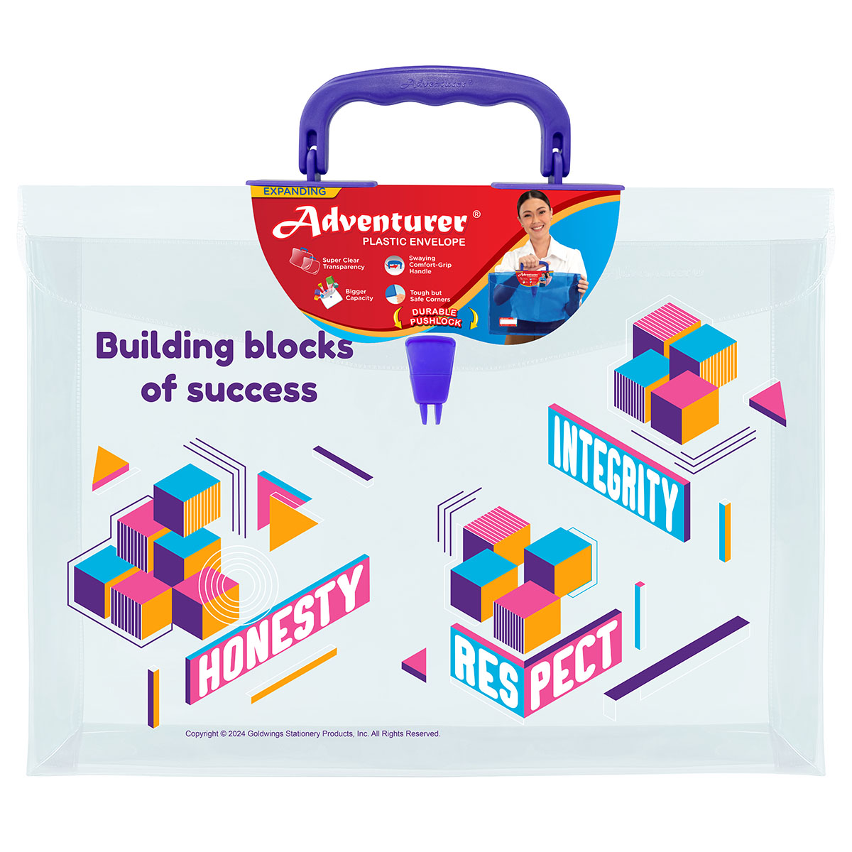 Item Description: Adventurer Expanding Plastic Envelope Transparent with Print, Long with Handle