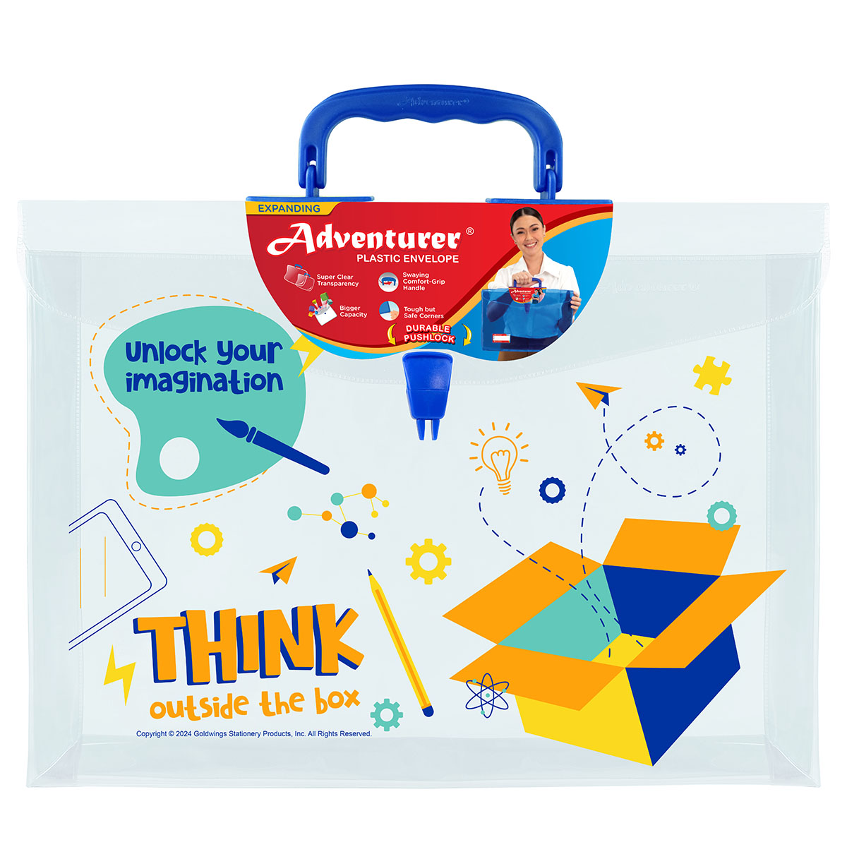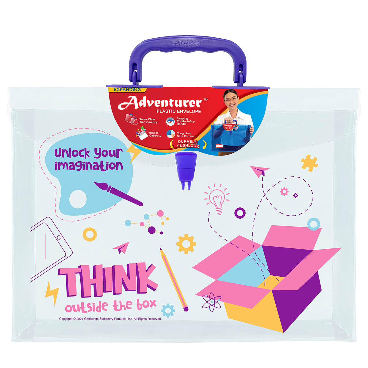 Item Description: Adventurer Expanding Plastic Envelope Transparent with Print, Long with Handle